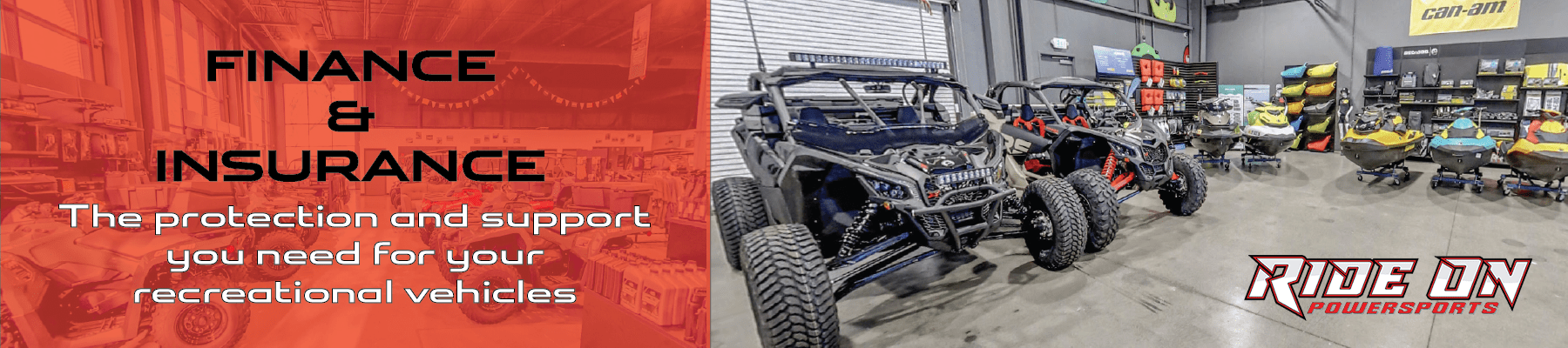 At Ride On Powersports, we're committed to providing you with not just exceptional recreational vehicles, but also the comprehensive protection and support you deserve. Feel free to stop by our showroom anytime to explore these F&I products up close, or give us a call today to learn more about how we can elevate your driving and leisure experience.